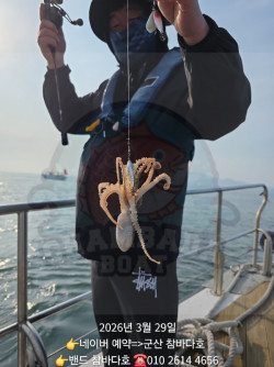 주말 날씨가 좋아요~~참바다호 슬슬 시즌 준비 중입니다.저힌 겨울에 우럭 조업으로 다녔구요.우럭 포인트 찾으면서요.이번주도 우럭 갈려했는데.. 사정이 있어서봄 쭈꾸미 확정으로 나가봅니다.28일 29일 조금 물때... 가시게요.바람 쏘이면서 알쭈 도전...확정이니... 놀러들 오셔요. 7만원 점심 없구요. 한강라면 기계 햇반.. 6시 매장 도착 6시30분 출항13시까지 합니다어여들 오셔요 .선장은 배 정비합니다..기름값 11만원 인상... 헉하면서 기름 넣으러가요.=== 참바다호 예약안내 ===예약문의 : 010-2614-4656오시는길 : 전북 군산시 옥도면 야미도 4길 27홈페이지 : http://chambada.sunsang24.com/ 참돔용품판매 : 바로가기